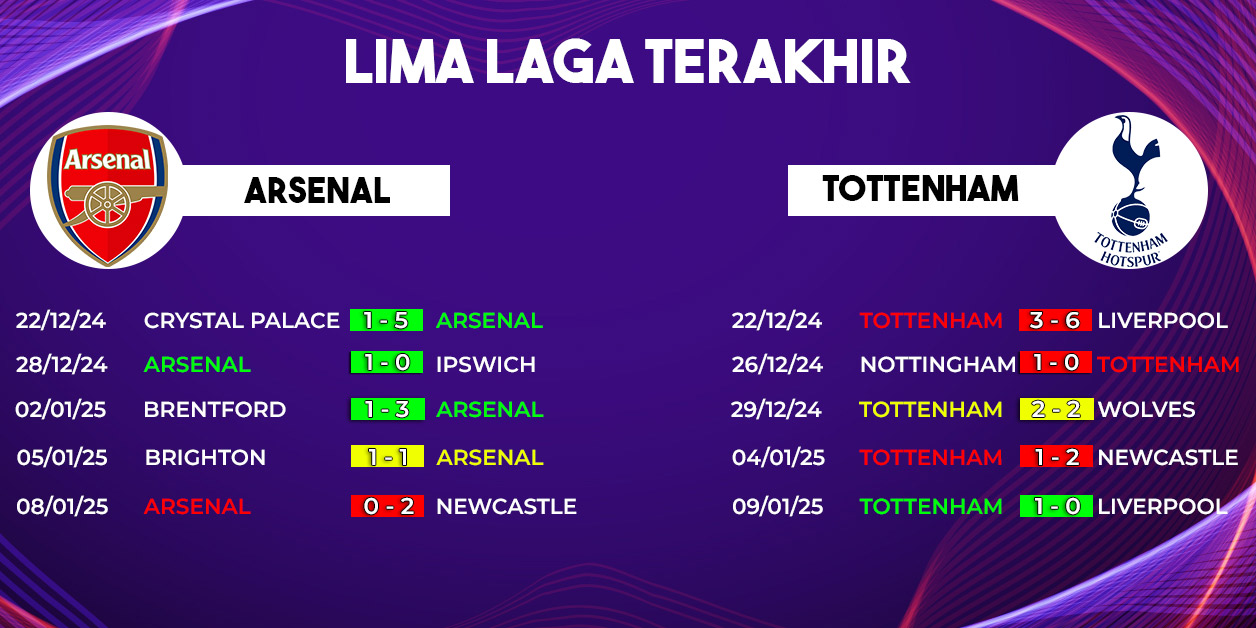 Kedua tim memasuki laga ini dengan performa yang kontras. Arsenal belum meraih kemenangan dalam tiga pertandingan terakhir, sementara Tottenham justru menunjukkan tren positif dengan dua kemenangan beruntun.