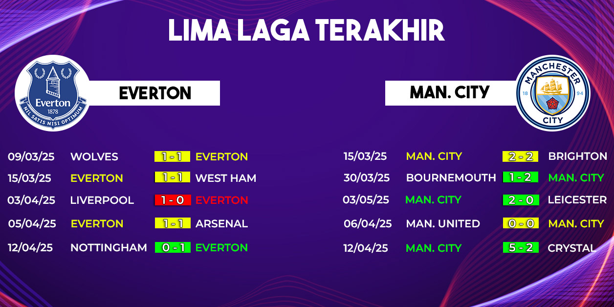 Jika melihat rekor pertemuan kedua tim dalam beberapa musim terakhir, Manchester City memang unggul secara statistik. Namun, hasil imbang di pertemuan pertama musim ini membuktikan bahwa dominasi tersebut tak lagi absolut. Everton kini memiliki kepercayaan diri untuk menahan atau bahkan mengalahkan City di kandang sendiri.